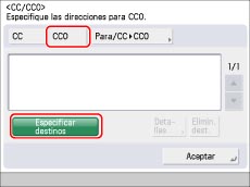 Pulse [Para] o [CCO] → seleccione las direcciones de correo electrónico que desea mover a [CC] → pulse [Aceptar].