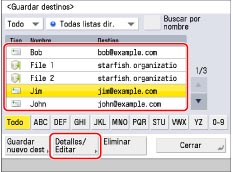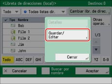 Seleccione el destino que desee cambiar → pulse [Detalles/Editar].