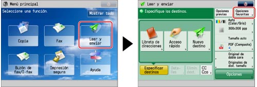 Pulse [Leer y enviar] → [Opciones favoritas].