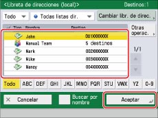 (teclas numéricas). Si pulsa [Direcciones sin número de acceso], aparecen los destinos que no se gestionan con un número de acceso.|