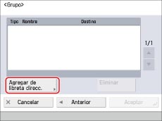 Para conocer las instrucciones acerca de la configuración de las direcciones de grupos, consulte Pantalla Libreta de direcciones en