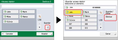 Para cancelar un destino especificado, seleccione de nuevo el destino que desea guardar.