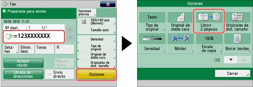 Especifique los destinos → pulse [Opciones] → [Libro