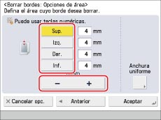 Pulse [-] o [+] para especificar la anchura de borrado de bordes.