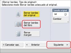 Pulse [Borrar bordes del libro] → pulse [Siguiente].