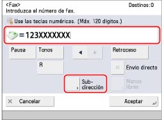 Introduzca el número de fax → pulse [Subdirección].