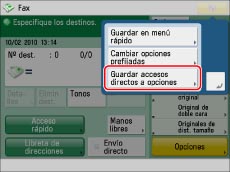 En la pantalla de funciones básicas de fax aparecen dos accesos directos a las opciones. [Original de doble cara] y [Originales de dist. tamaño] aparecen como predeterminadas. Estos accesos directos pueden cambiarse a las funciones que utiliza con frecuencia.