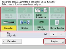 Seleccione la opción que desea asignar → pulse [Aceptar].
