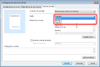 Para incluir una portada en el fax, siga el procedimiento que se describe a continuación.