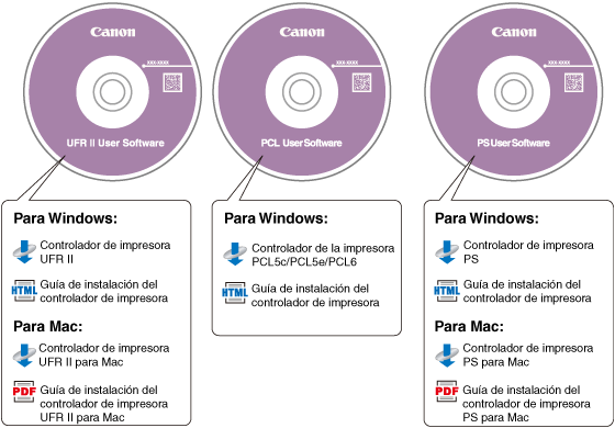 Si hay más de un CD-ROM, utilice la siguiente información como referencia y seleccione el CD-ROM y el controlador de impresora adecuados.