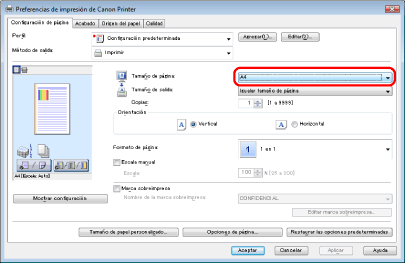 Seleccione el tamaño de página del documento que haya creado en la aplicación en [Tamaño de página].