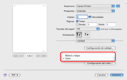 Configuración del modo de color de impresión