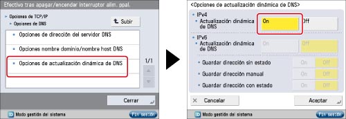 Pulse [Opciones de actualización dinámica de DNS] para [Opciones de DNS] → active [Actualización dinámica de DNS].