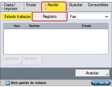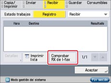 Para mostrar [Comprobar RX de I-fax], seleccione [Recibir] en la lista desplegable.
