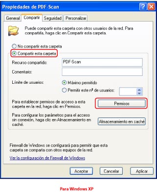 Permiso de acceso a la carpeta compartida (Hoja [Compartir]):