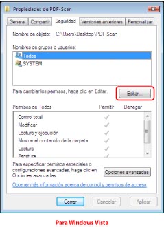 Siga el procedimiento descrito a continuación para especificar los permisos de acceso a la carpeta 'PDF-Scan'.