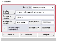 Especifique la carpeta del ordenador de destino en la que guardar. También puede pulsar [Examinar] para especificar la carpeta del equipo de destino.