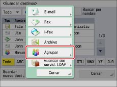Si guarda un grupo que contiene varias direcciones de correo electrónico en la libreta de direcciones, puede hacer envíos simultáneos a todas las direcciones de correo electrónico incluidas en ese grupo seleccionándolo como destino.