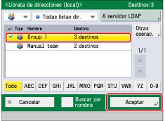 Seleccione el nuevo destino [Group 1] recién guardado → pulse [Aceptar].