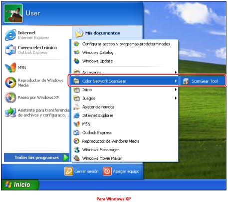 (Iniciar) → [Todos los programas] → [Color Network ScanGear].