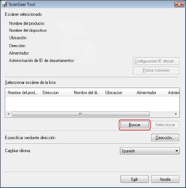 Los escáneres encontrados aparecen en [Seleccionar escaner de la lista].