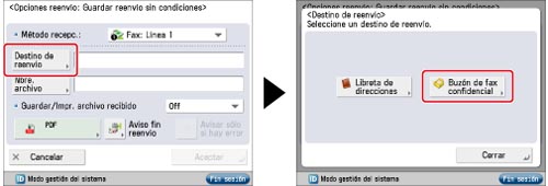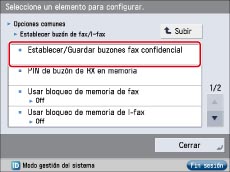 Pulse [Establecer buzón de fax/I-fax] → [Establecer/Guardar buzones fax confidencial].