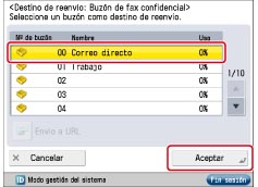 Pulse [Destino de reenvío] → [Buzón de fax confidencial].