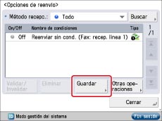 Seleccione la opción de reenvío guardada → pulse [Validar/invalidar].
