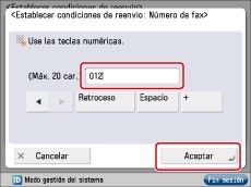 Introduzca el número de fax del remitente → pulse [Aceptar].