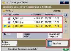 Seleccione el archivo que desee imprimir → pulse [Imprimir].