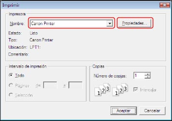 En el cuadro de diálogo [Imprimir], haga clic en [Propiedades].