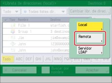 Seleccione [Libreta de direcciones] → [Cambiar libr. de direc.] → [Remota].