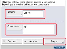 Pulse [Nombre] → introduzca un nombre → pulse [Aceptar].