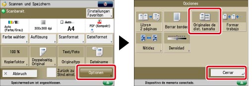 Si elige el modo Originales de dist. tamaño, la velocidad de lectura puede ser inferior a la normal.