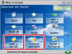 Pulse [Leer y guardar] o [Archivos guardados] en la pantalla Menú principal.