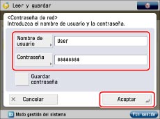 Introduzca el nombre de usuario y la contraseña → pulse [Aceptar].