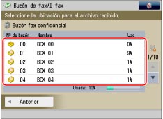 Pulse [Buzón de fax/I-fax] → [Buzón fax confidencial].