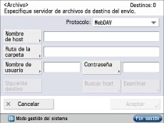 Para enviar a un servidor WebDAV, se requiere autenticación de servidor. Antes de utilizar un servidor WebDAV, active la autenticación.