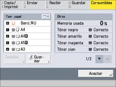 Para conocer las instrucciones acerca de cómo comprobar el estado de los trabajos de copia, fax y envío, consulte "Monitor estado/Cancelar".