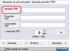 En [Intervalo POP] especifique el intervalo de tiempo en el que desea comprobar automáticamente el servidor POP → pulse [Siguiente].