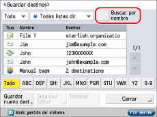 (teclas numéricas). Si pulsa [Direcciones sin número de acceso], aparecen los destinos que no están gestionados con un número de acceso.|