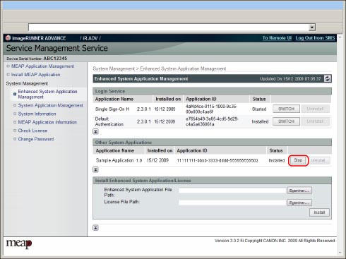 Haga clic en [Stop] para la aplicación que desee cerrar.