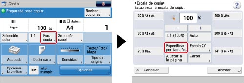 Pulse [Esc.copia] → [Especificar por tamaño].