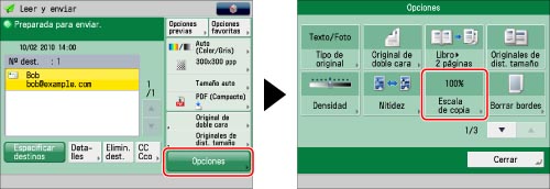Si se selecciona [Original largo] como tamaño de lectura, los documentos sólo se pueden enviar con una escala de zoom del 100%.
