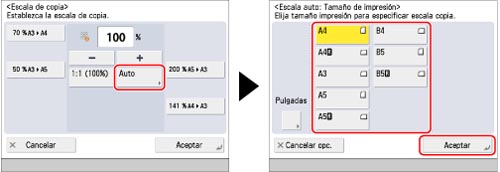 Puede configurar el equipo para que ajuste automáticamente la escala de zoom, o puede especificar