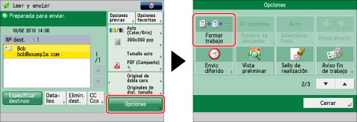 Sólo es posible cambiar las opciones de los modos disponibles en [Cambiar opciones] mientras se encuentra en el modo Formar trabajo. Seleccione de antemano el modo que desee.