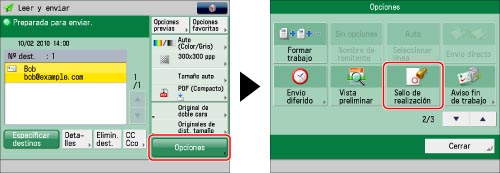 Especifique el destino → pulse [Opciones] → [Sello de realización].