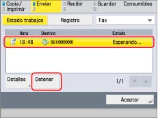 para cancelar el trabajo de envío que se esté leyendo en ese momento. |