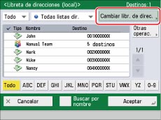 [Cambiar libr. de direc.] aparece solamente cuando están guardados tanto la libreta de direcciones remota como el servidor LDAP. Si solo está guardada la libreta del servidor LDAP en este equipo, aparecerá la opción [A servidor LDAP].