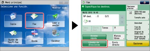 Para conocer las instrucciones acerca de la configuración de las direcciones de grupos, consulte Pantalla Libreta de direcciones en